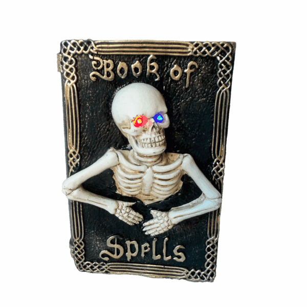 Iluminar espeluznante esqueleto libro de hechizos decoración de Halloween estante mantel cuidador.