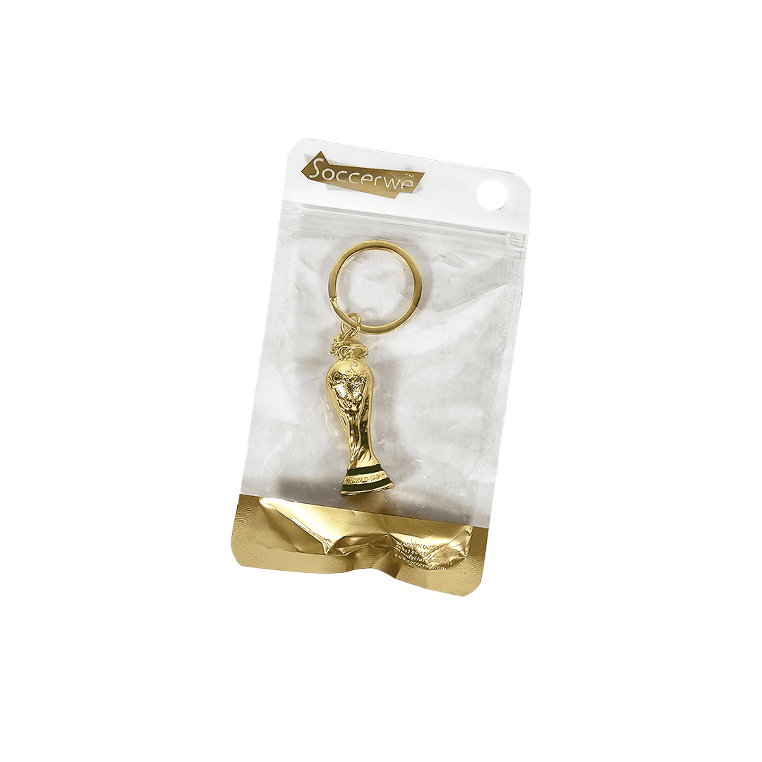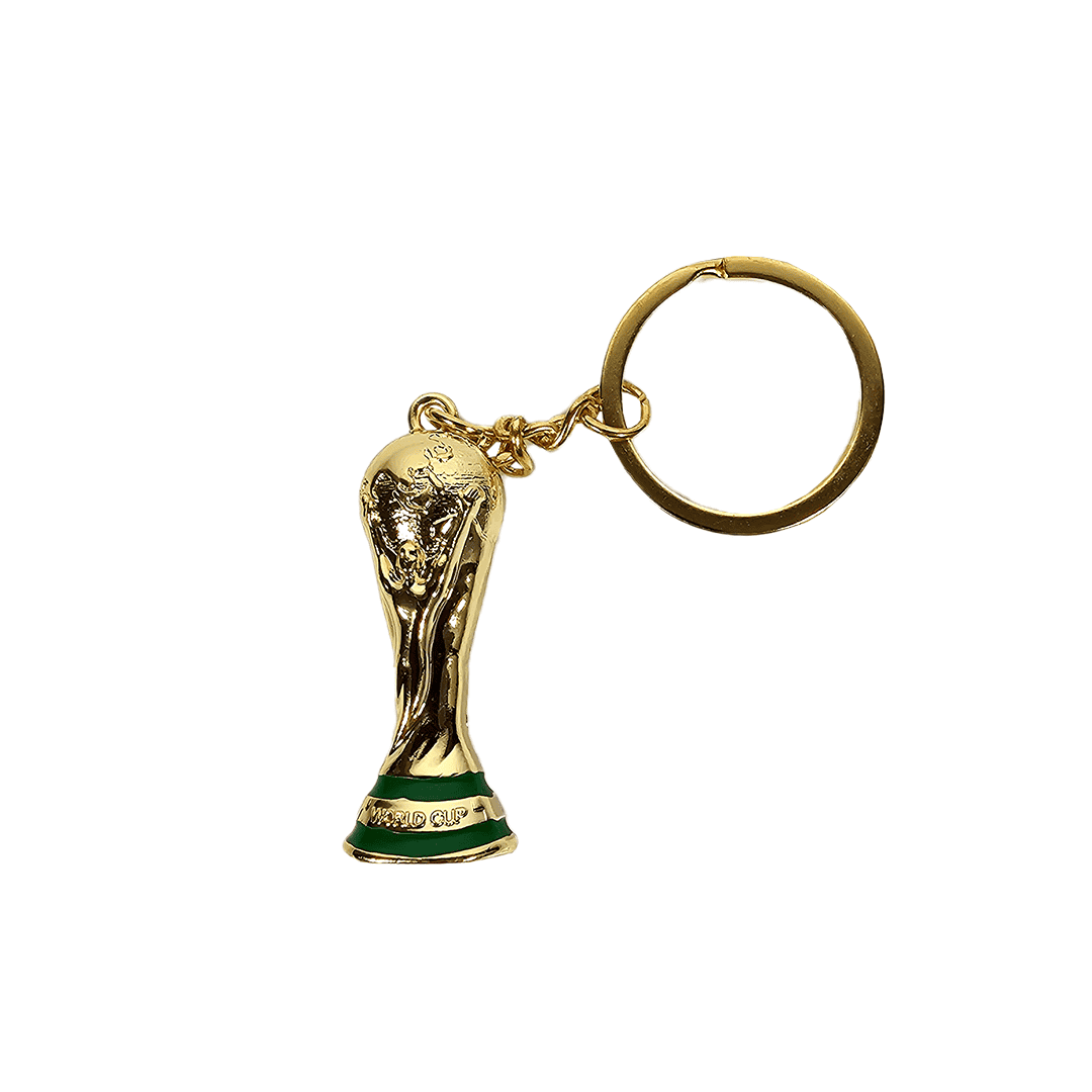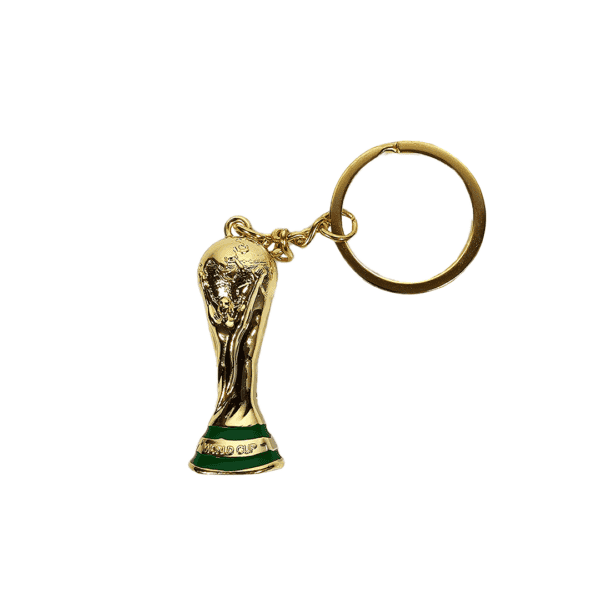 Llavero trofeo de mundial dorado, 1 unidad.