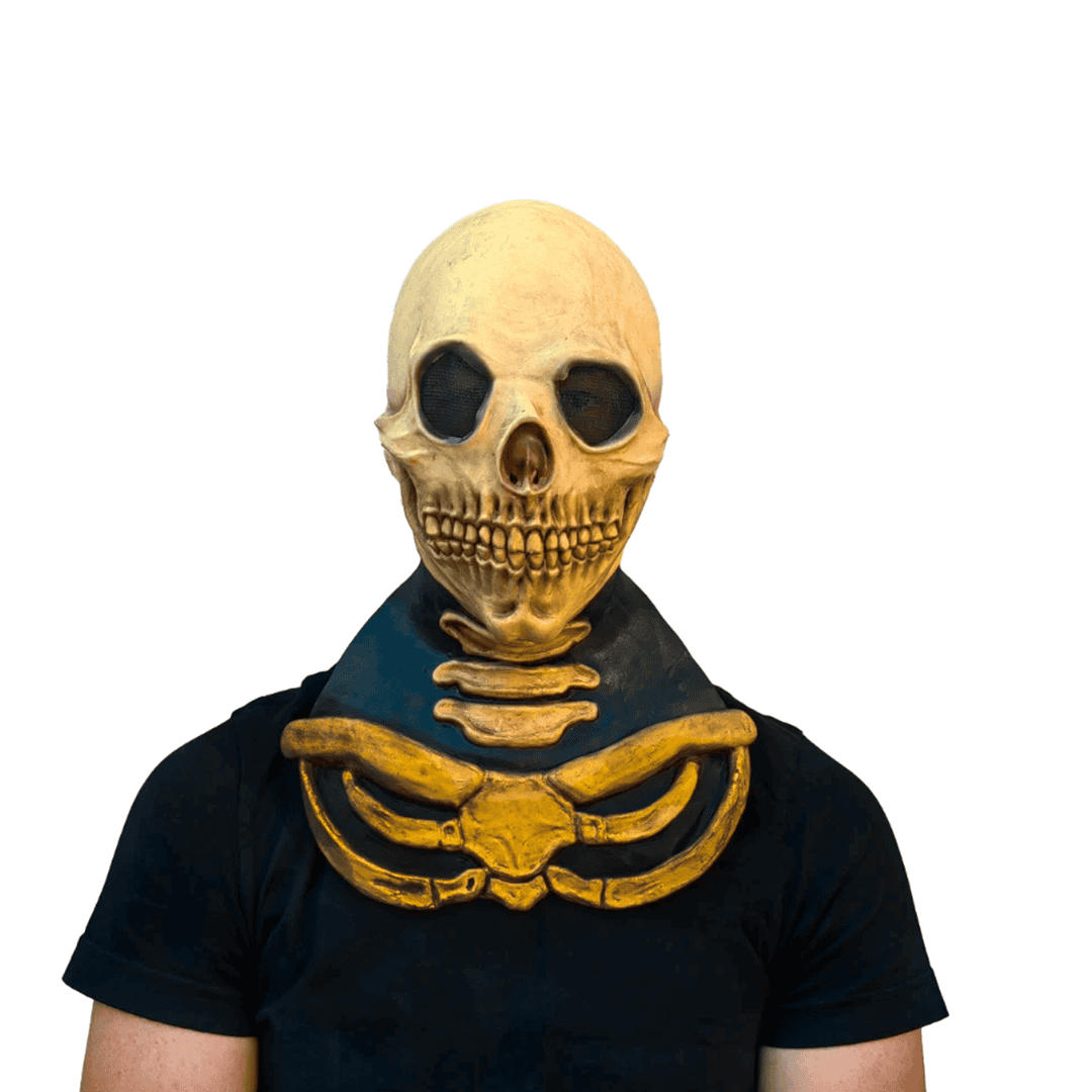 Máscara facial de látex calavera cuello largo Ghoulish Productions horror Halloween