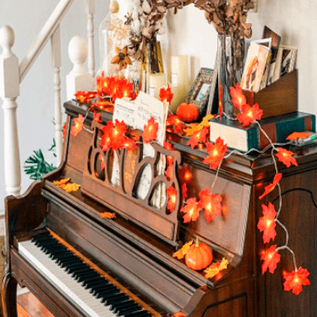 Guirnala de luces LED de hojas decorativas.
