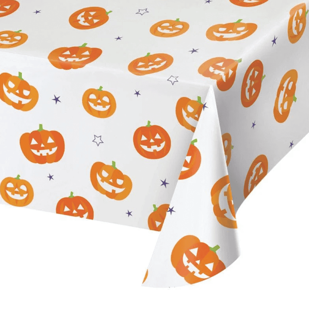 Mantel de papel pumpkins halloween. Material: papel certificado. Dimensiones: 54 x 102 pulgadas