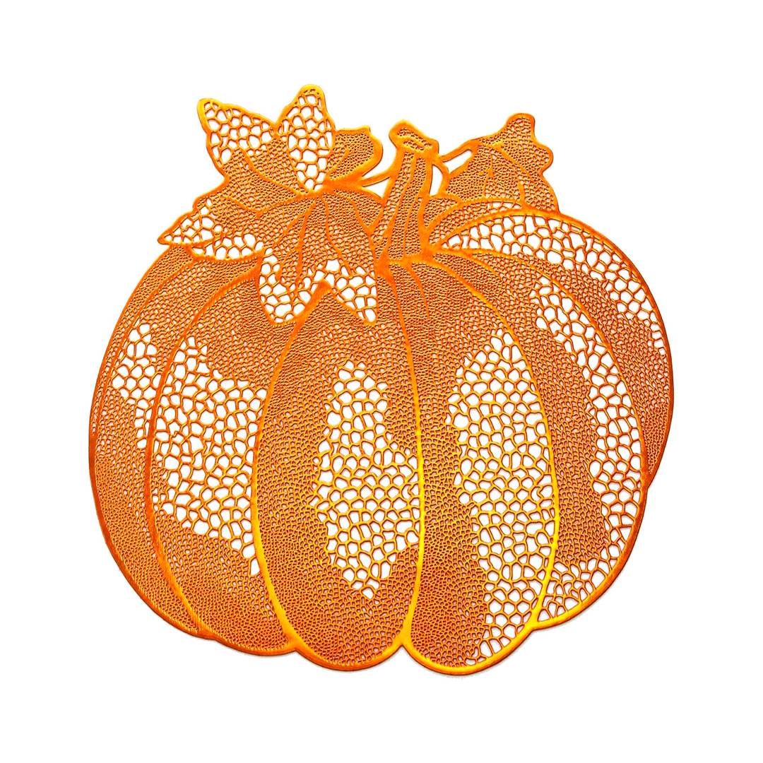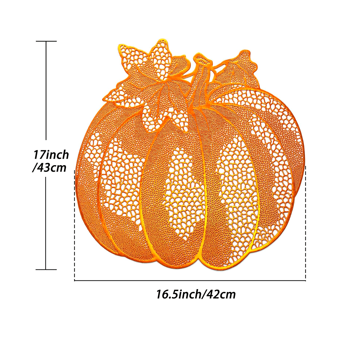 Mantel individual metálico de 16.5 x 17 pulgadas para mesa de comedor, decoración de calabaza