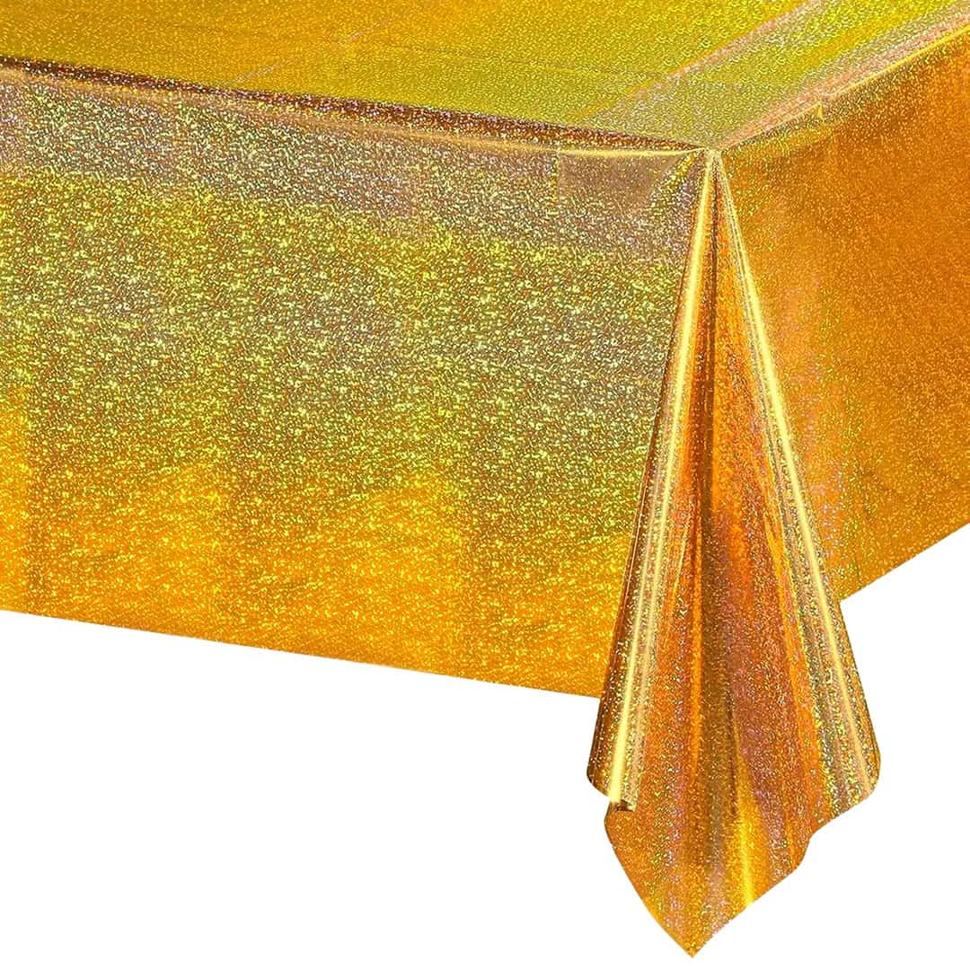 Mantel Plastico Rectangular Glitter Color Dorado, 1 unidad.