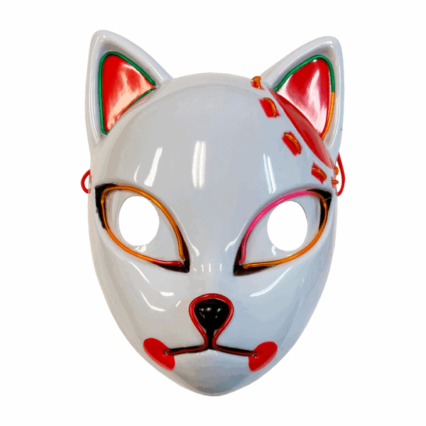 Máscara de gato de anime con luz LED. Material plástico duro.