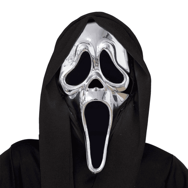 Máscara cromada con licencia oficial de Ghost Face, material rigido.