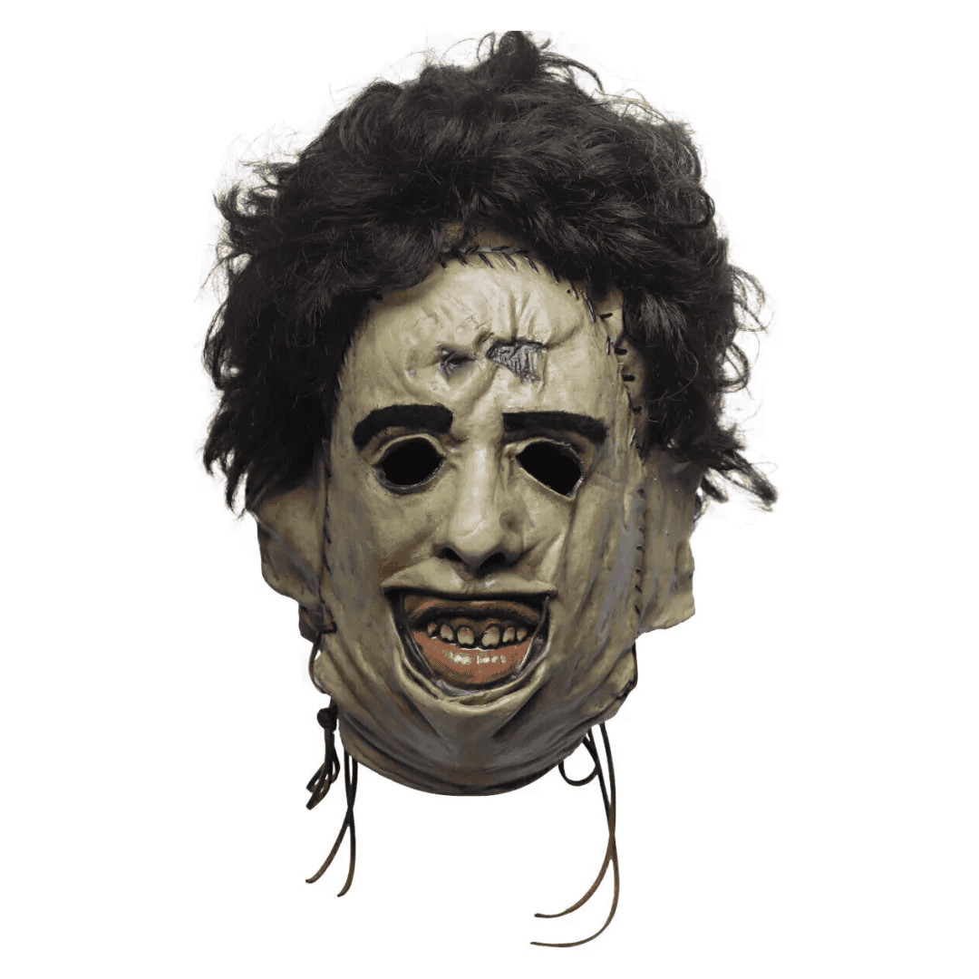 Máscara de látex Killing 1974 de la línea The Texas Chainsaw Massacre. La máscara “Killing 1974” de “Masacre en Texas” es una reliquia de terror impregnada de historia. T