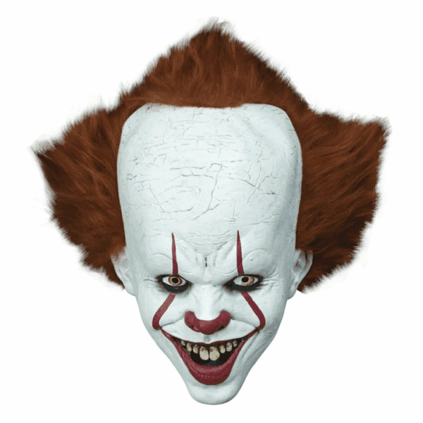Máscara de látex New It Deluxe Mask de la línea It – Chapter II. La máscara de Eso el payaso es terrorífica. Con su sonrisa amenazante y sus ojos penetrantes, esta máscara de látex transformará a cualquier persona en el temido payaso demoníaco. Los detalles en la piel simulan las cicatrices y las arrugas, mientras que su pelo naranja es una firma distintiva de Eso.