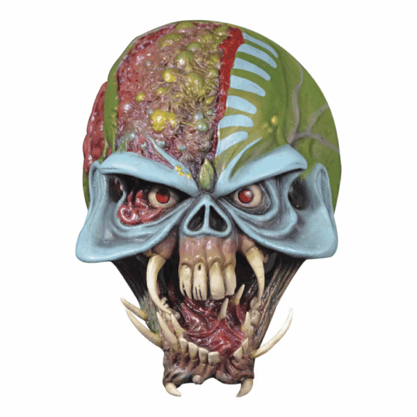 Máscara de látex Final Frontier de la línea Iron Maiden. ¡Embárcate en una odisea intergaláctica con nuestra máscara de látex de “Final Frontier” de Iron Maiden! Detalles meticulosos y la mirada penetrante de Eddie el Explorador, emblemático personaje de la banda, dan vida a esta pieza única. La fusión de colores vibrantes y oscuros evoca la vastedad del espacio.
