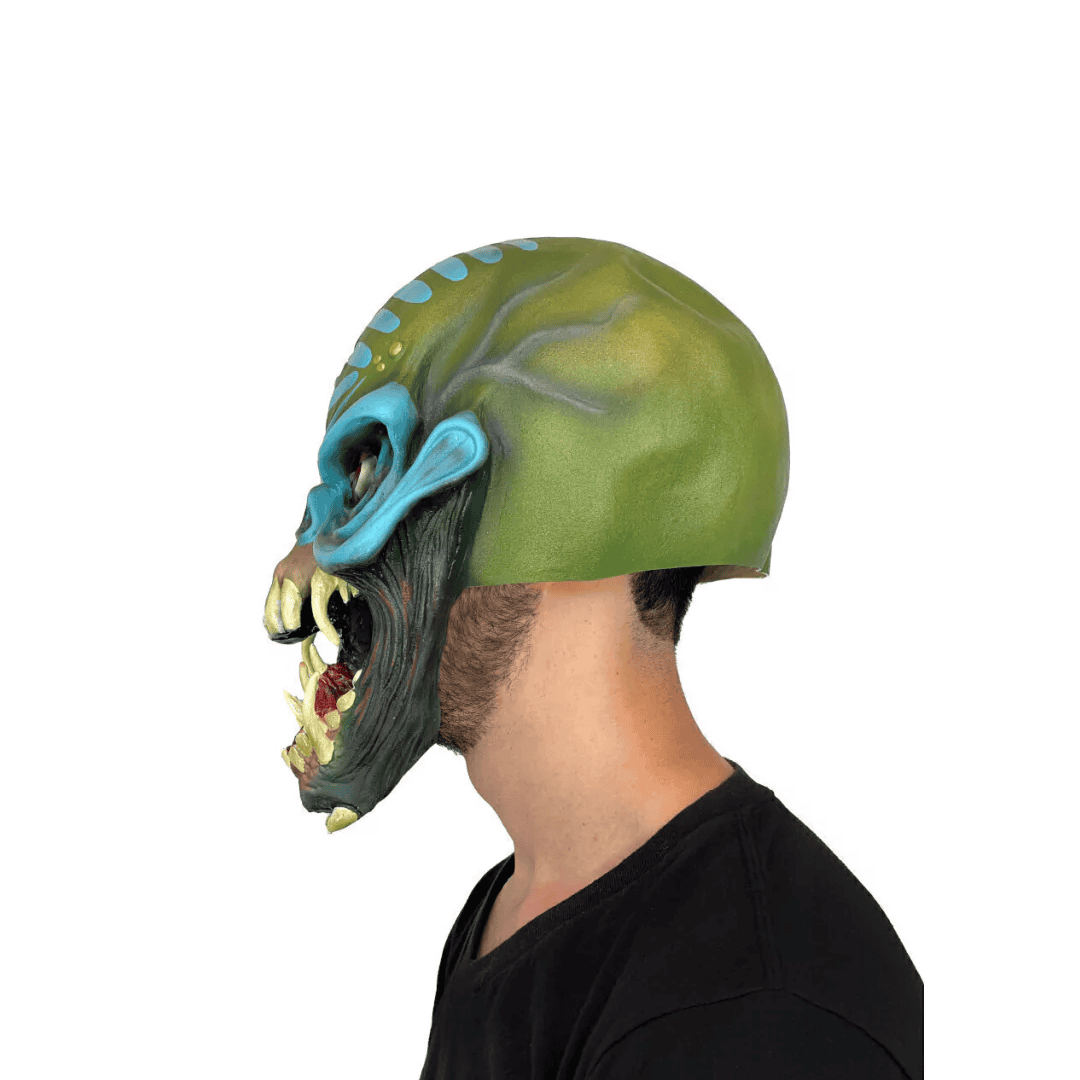 Máscara de látex Final Frontier de la línea Iron Maiden. ¡Embárcate en una odisea intergaláctica con nuestra máscara de látex de “Final Frontier” de Iron Maiden! Detalles meticulosos y la mirada penetrante de Eddie el Explorador, emblemático personaje de la banda, dan vida a esta pieza única. La fusión de colores vibrantes y oscuros evoca la vastedad del espacio.