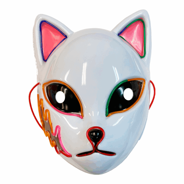 Máscara de gato con cicatriz de anime con luz LED. Material plástio duro.