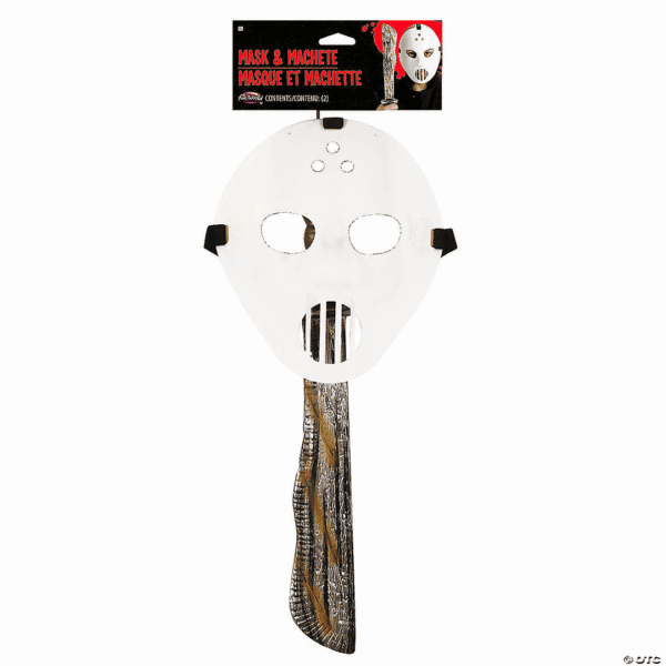 Accesorios de disfraz de máscara de hockey blanca para adultos y machete.