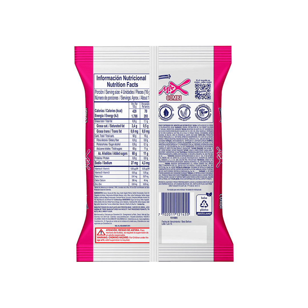 Caramelo blando sabor a mora lecha, naranja leche, limón lechee. Paquete de 50 unidades.