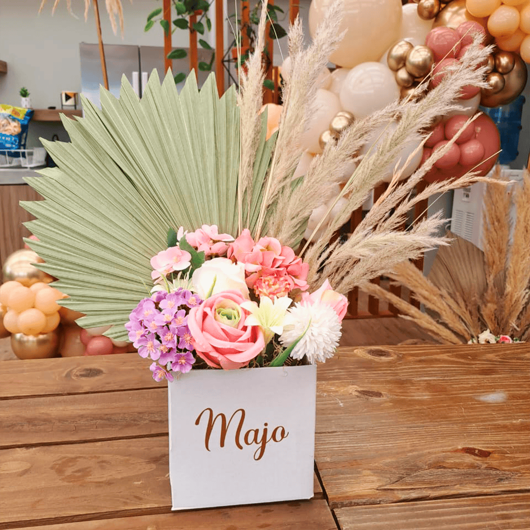 Mini bouquet caja con flores artificales o naturales. ¡Cotiza la tuya hoy!