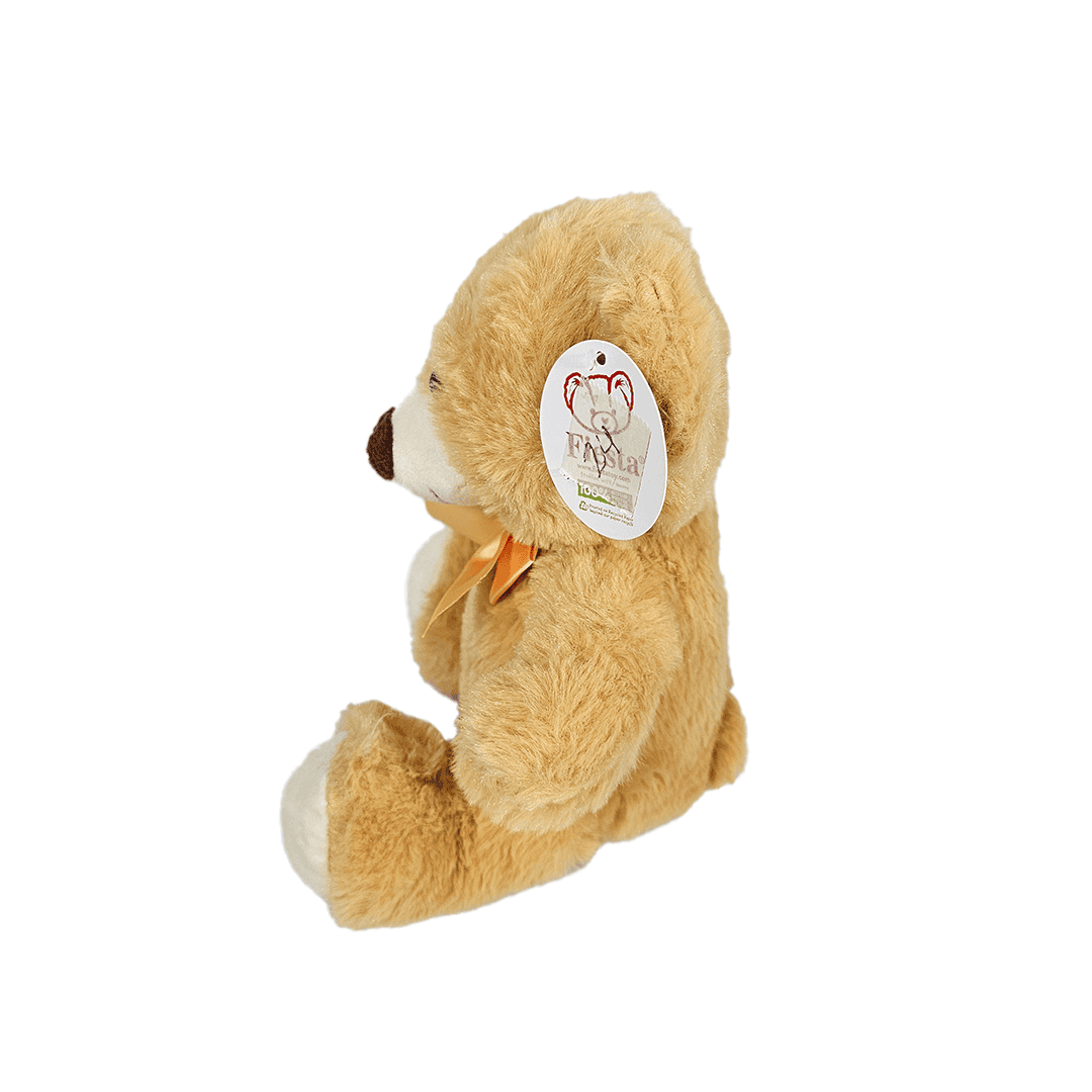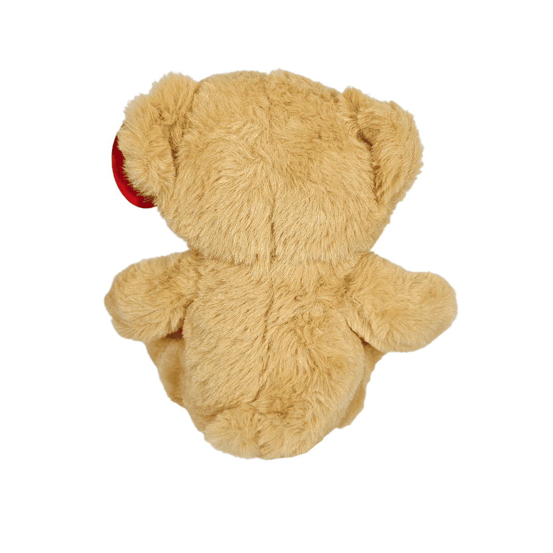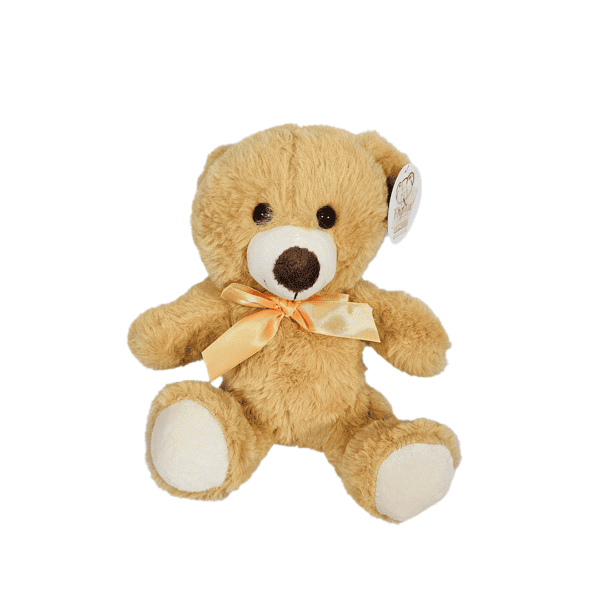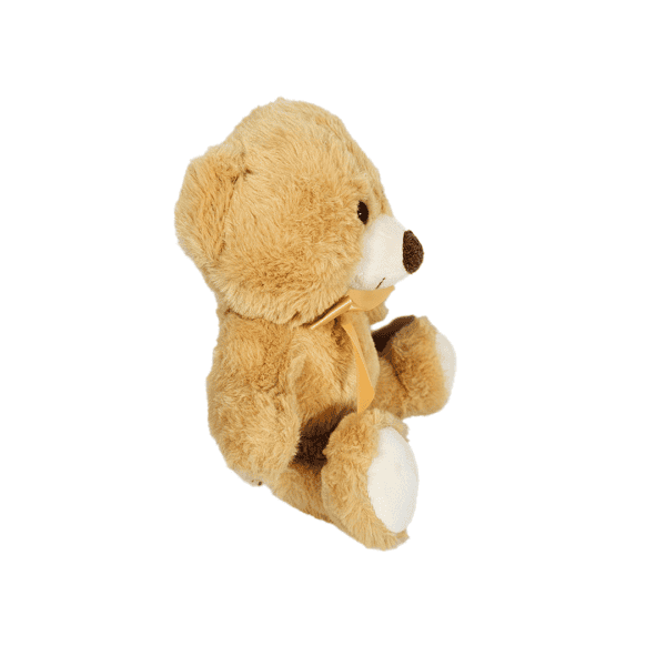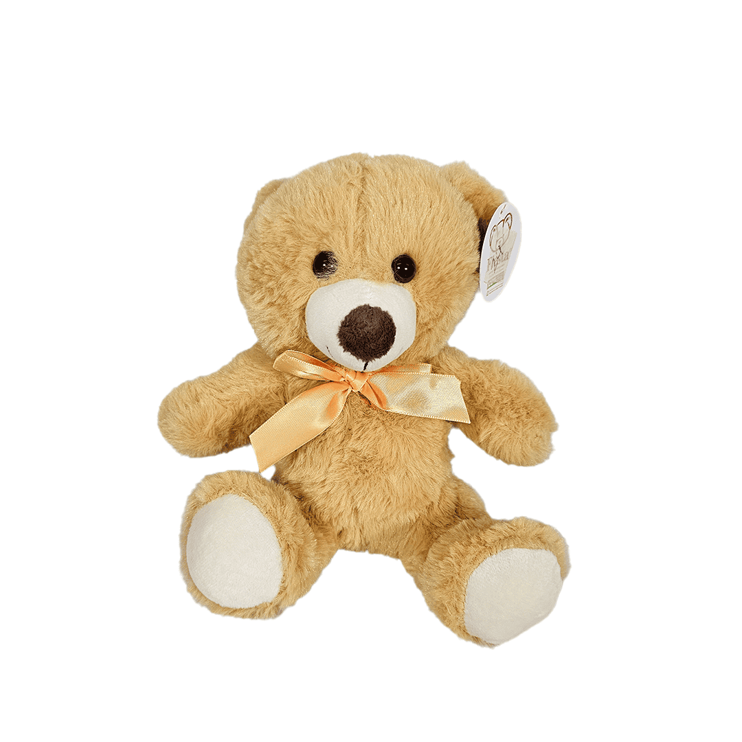 Mini oso de peluche, color café claro, tamaño pequeño.