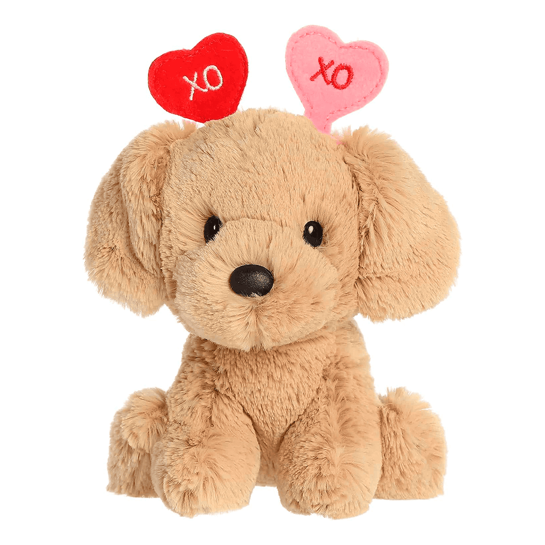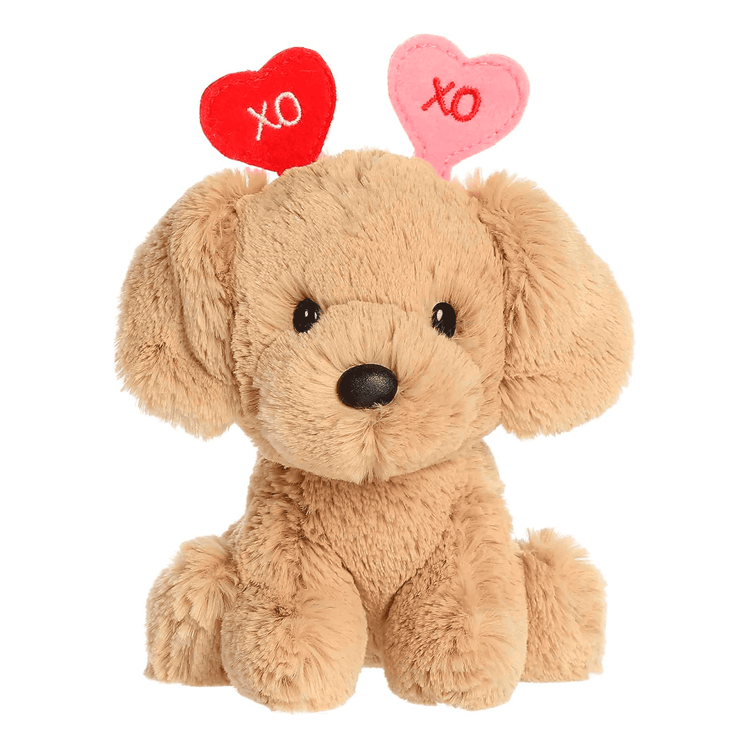 Mini peluche de perrito XO, ciolor bronceado de 6 pulgadas