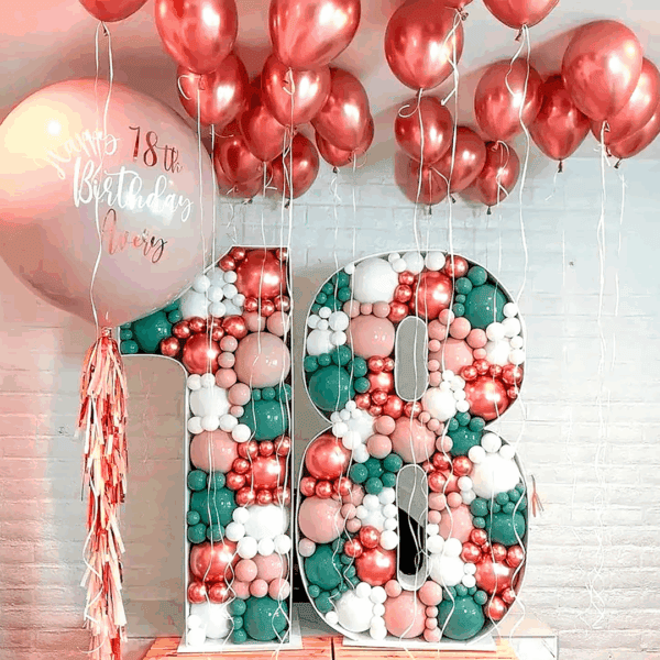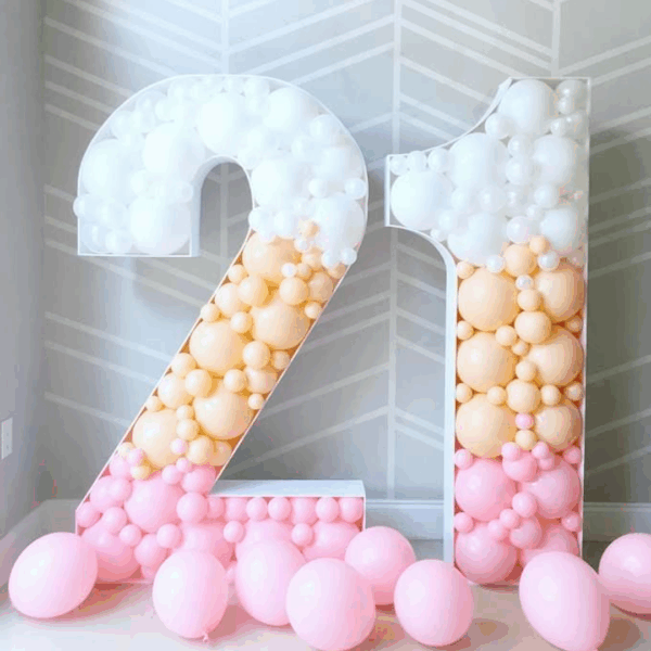 Números 3D, rellenas con globos de látex en los colores a elección. Disponible en tamaño de 90cm. El precio varía según la cantidad de números. ¡Cotiza la tuya hoy!