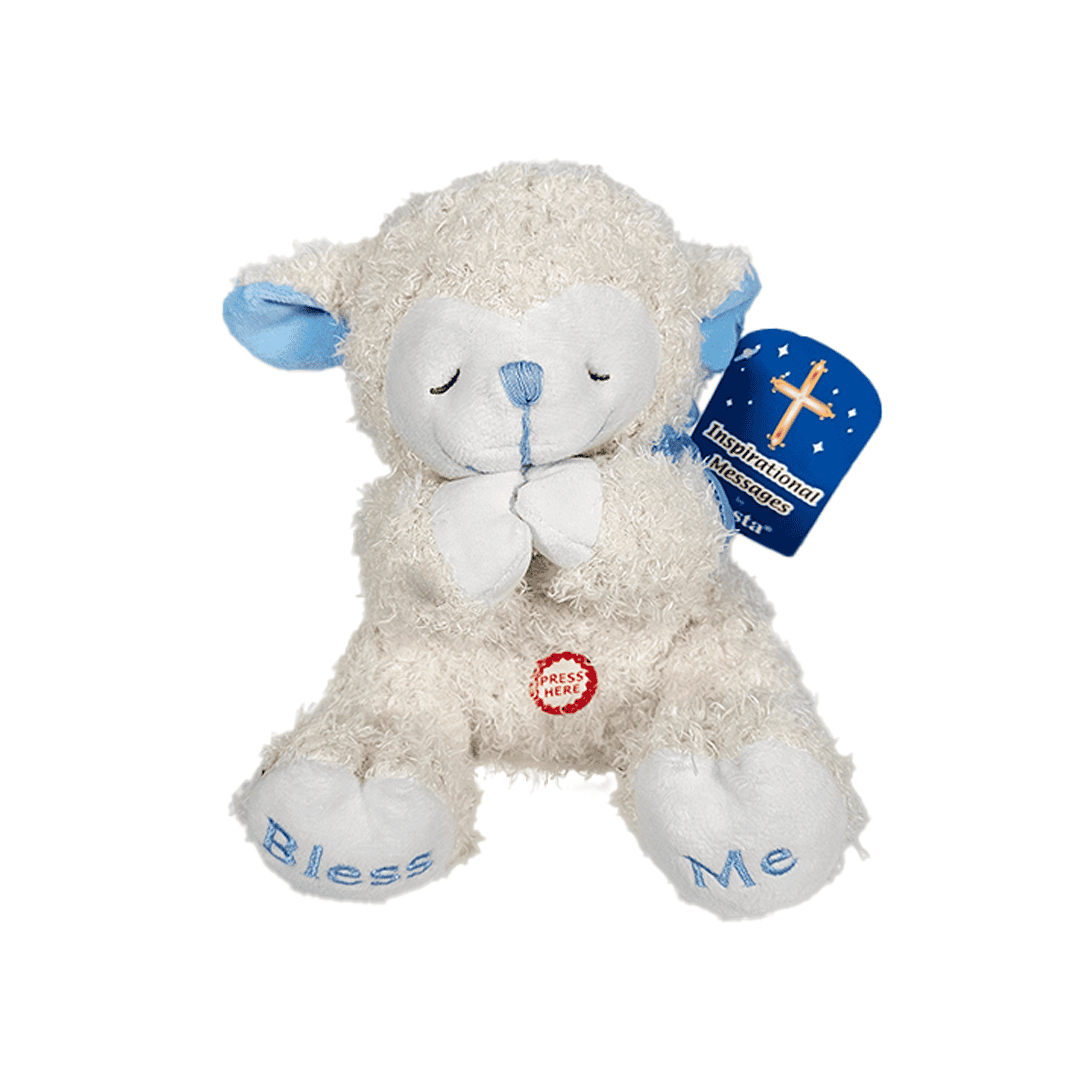 Oveja que ora de Peluche , pequeño, tiene sonido. Color blanco.