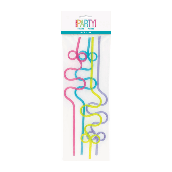 Pajitas de plástico de colores surtidos – 12 pulgadas (4 unidades) – Pajitas reutilizables, divertidas y flexibles para niños y fiestas