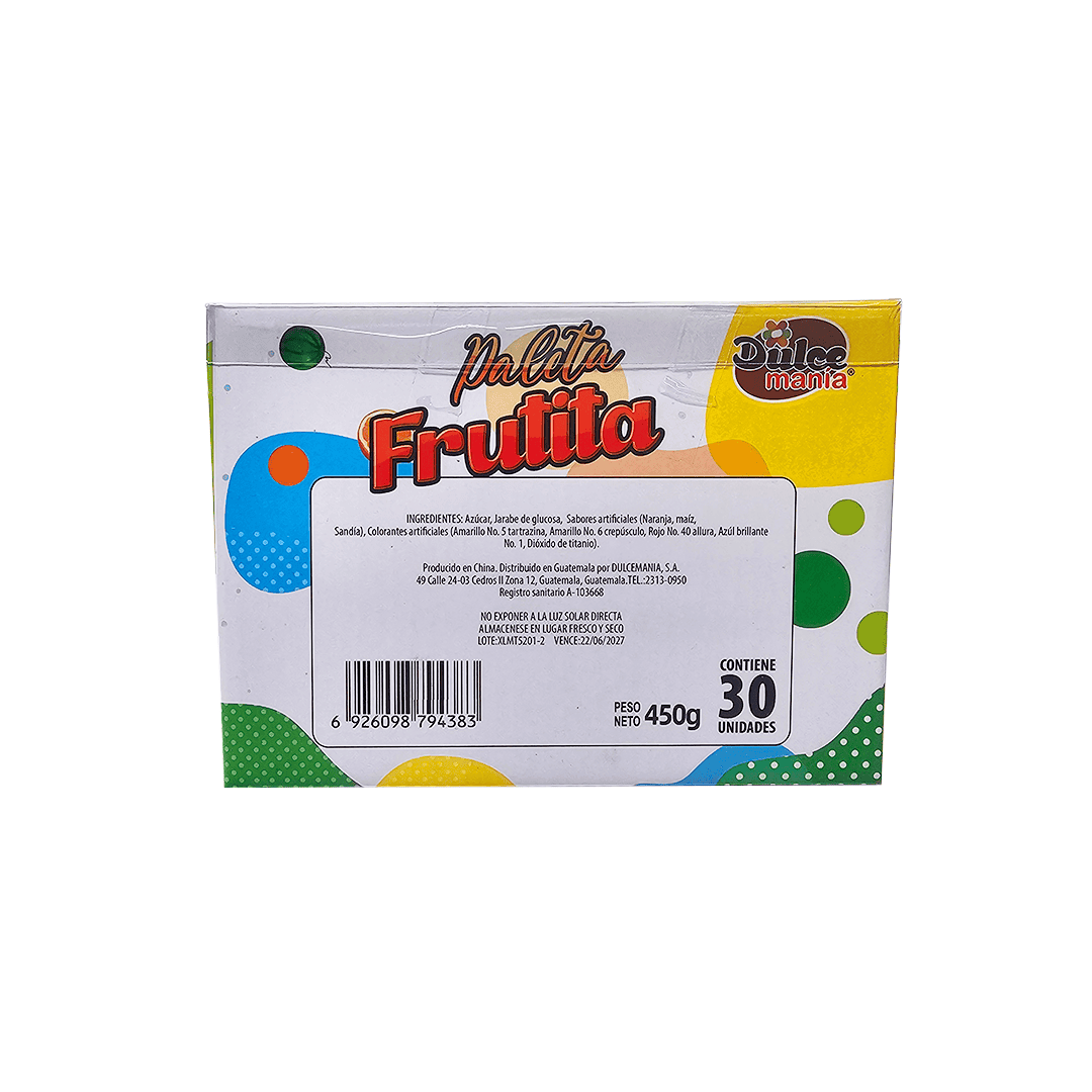 Paleta de frutas con sabores surtidos. Paquete de 30 unidades.