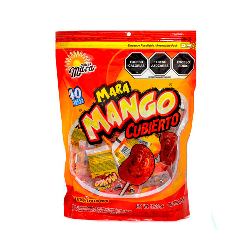 Paletas cubiertas de chile Revolcado Mango. Paquete de 40 unidades.