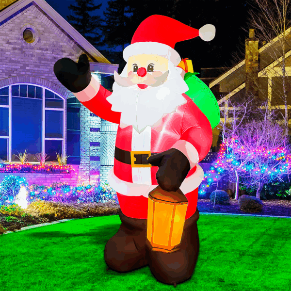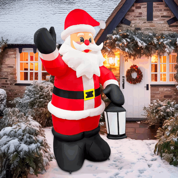Papá Noel inflable con movimiento de brazo de 2,6 metros con linterna y luces LED.