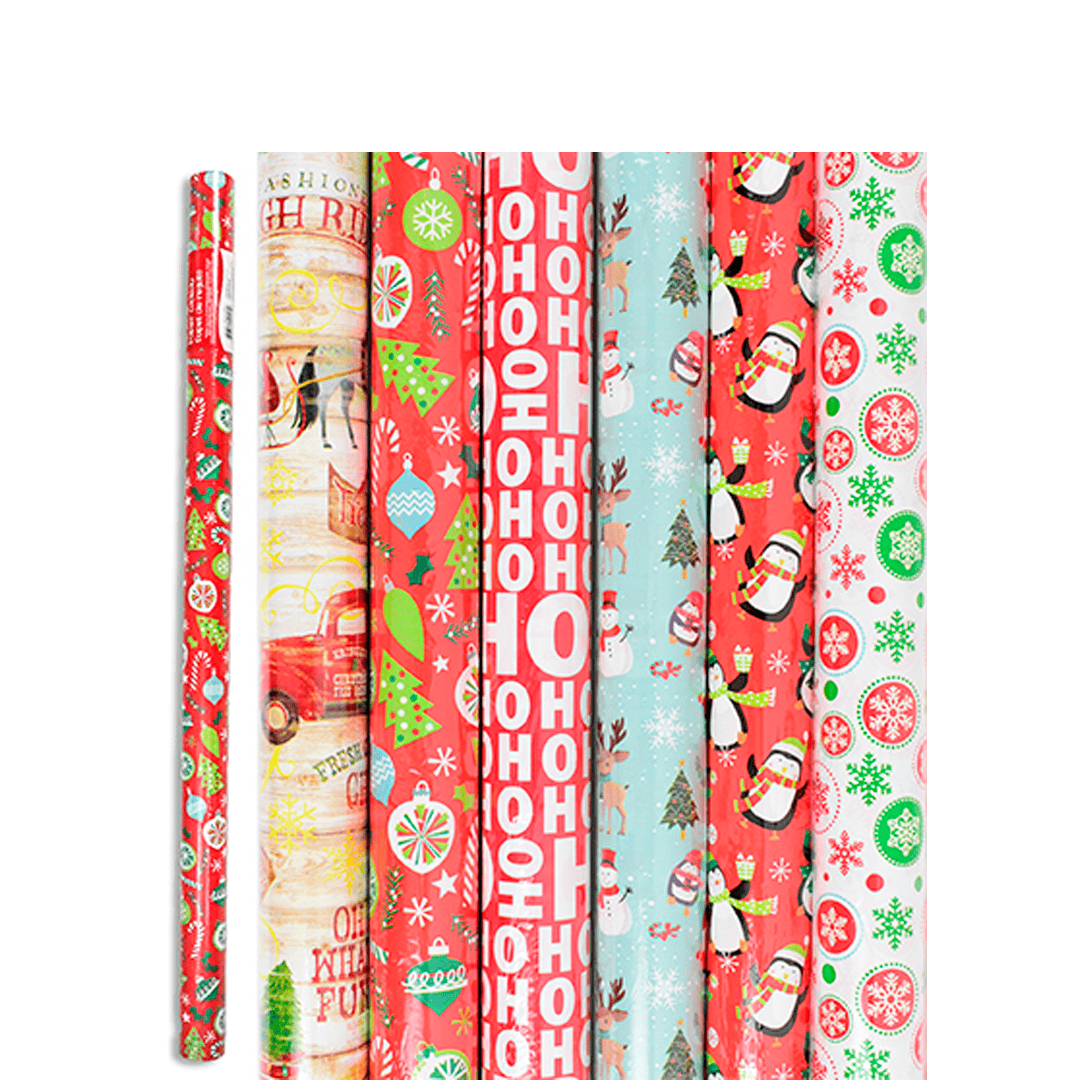 Empaque navideño en rollo individual de 30 x 72 pulgadas, 6 diseños diferentes. Nota: Este producto es de presentación surtida, por lo que podrías recibir cualquiera de sus variaciones. Si prefieres un color específico, indícalo en tu pedido; se enviará según disponibilidad.