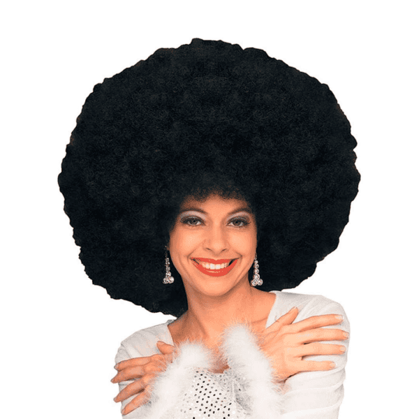 Peluca de disfraz afro, jumbo de los años 70 para adulto, color negro, talla única