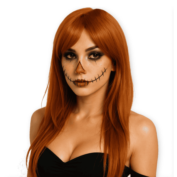 Peluca naranja larga con flequillo lateral jessica
