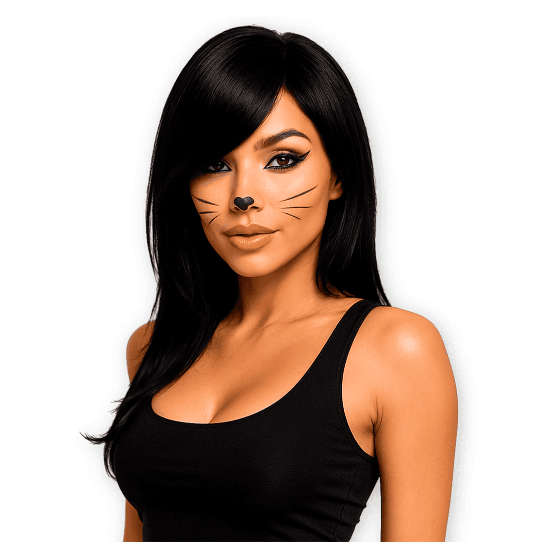 Peluca negra larga con flequillo lateral jenna