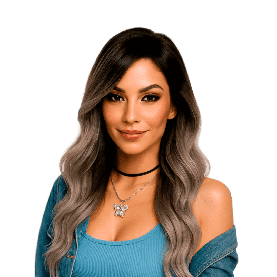 Peluca ondulada color castaño degradado
