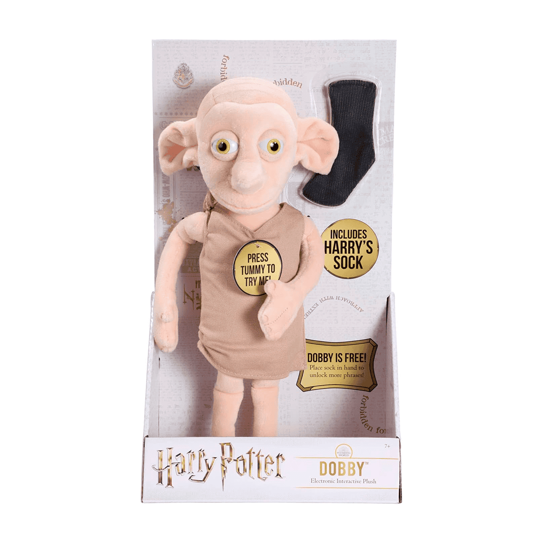 Peluche interactivo electrónico Dobby, dice 16 frases únicas, mide aproximadamente 12 pulgadas de alto.