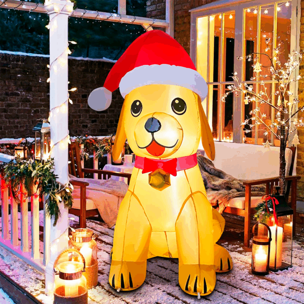 Perro navideño inflable de 1,5 metros con luces LED integradas, perro navideño inflable