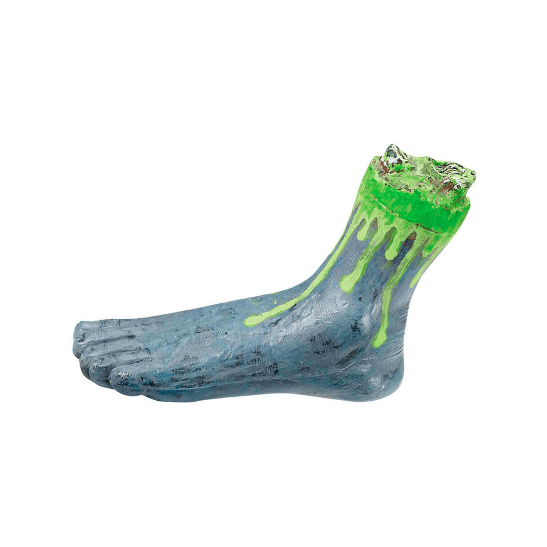 Completa tu temática de zombis de riesgo biológico este Halloween con este genial pie amputado. Estas extremidades de lujo parecen arrancadas de un cuerpo, mostrando los huesos y rezumando sangre radiactiva verde.