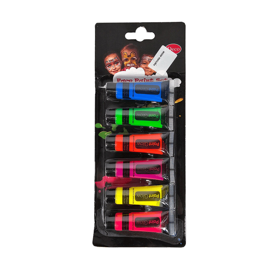 Pintura Neon cremosa, paquete de 6 colores surtidos, fácil de aplicar, ideal para fiestas, el color resalta con luz UV.