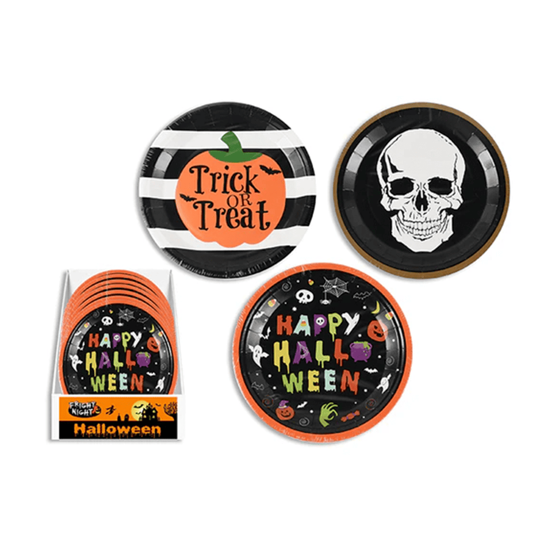 Platos redondos grandes de Halloween. 8 por paquete. Tamaño de 9″. Nota: Este producto es de presentación surtida, por lo que podrías recibir cualquiera de sus variaciones. Si prefieres un diseño específico, indícalo en tu pedido; se enviará según disponibilidad.