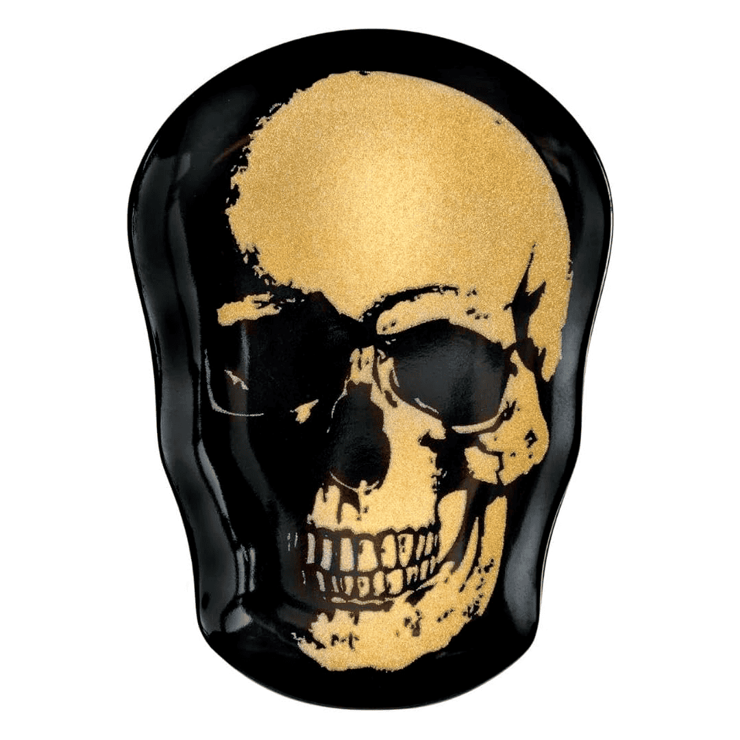 Plato negro con calavera dorada