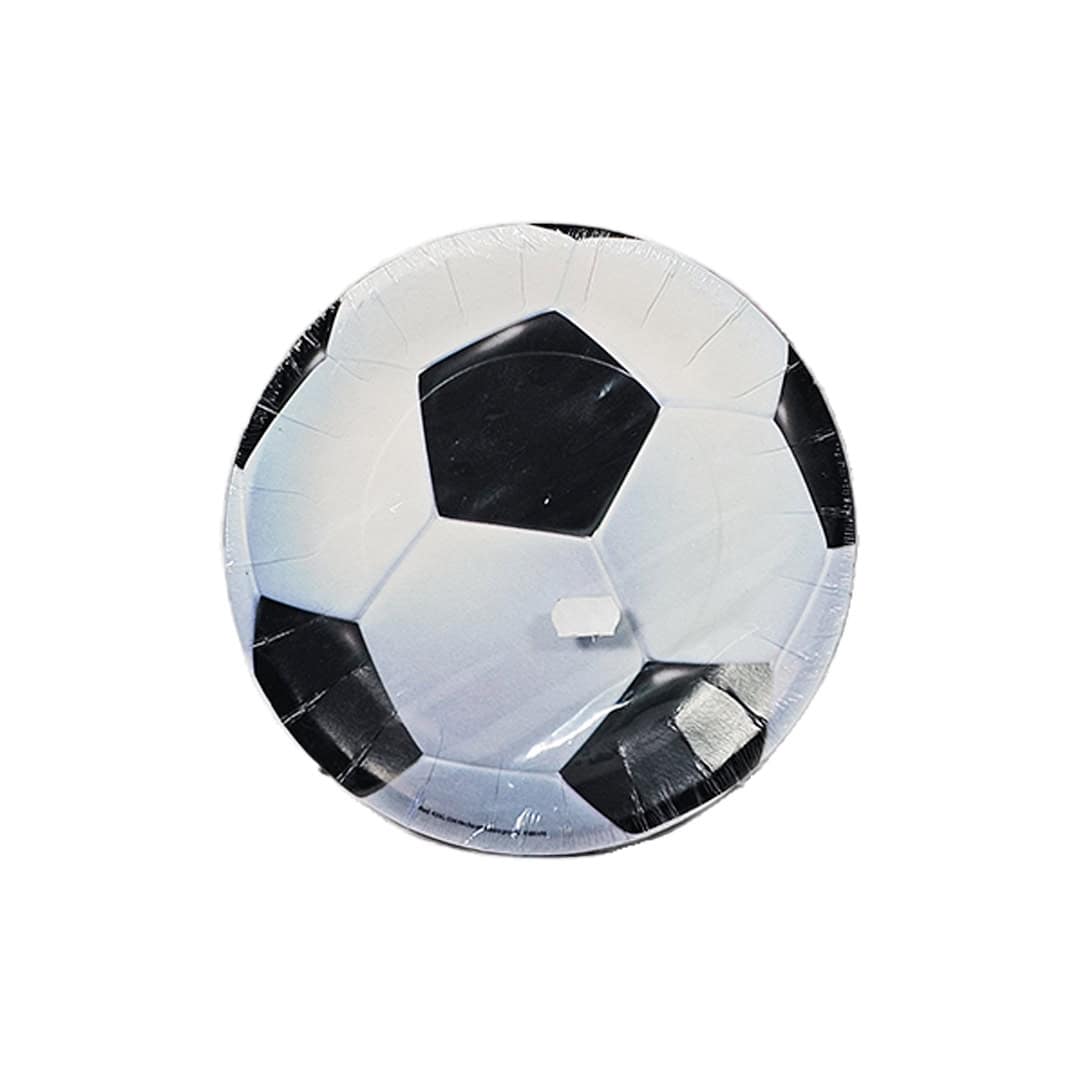 Plato redondo con diseño de pelota de fubtol, ideal para pastel, 8 unidades.