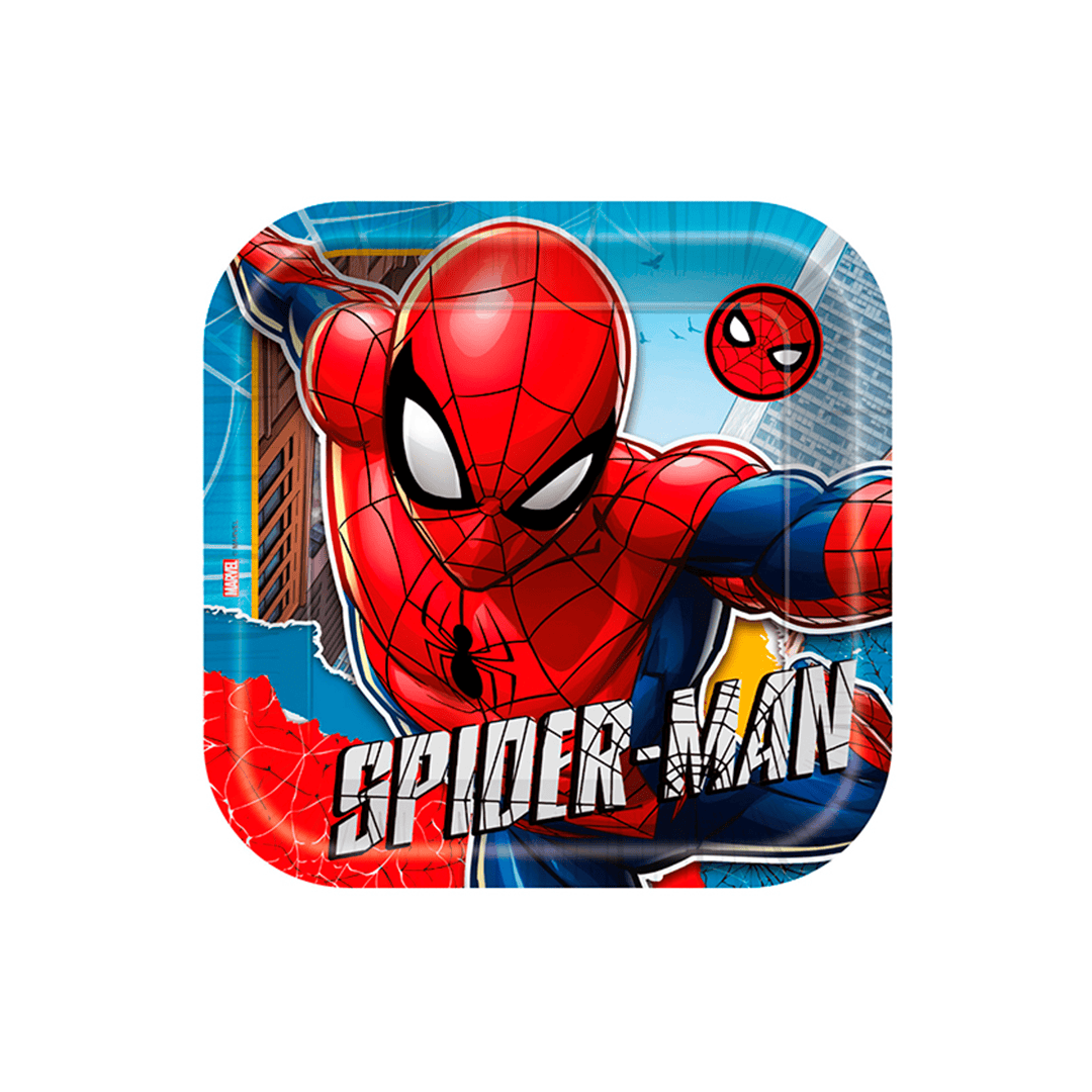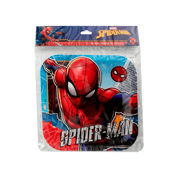 Plato de 7 pulgadas con diseño de Spiderman, paquete de 6 unidades.