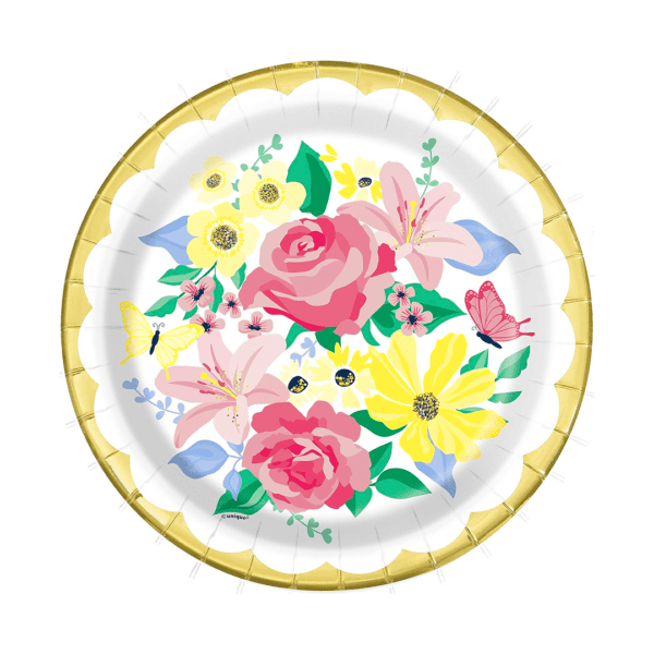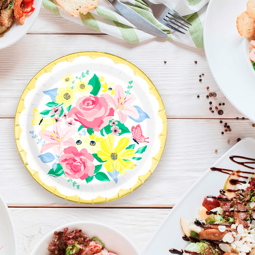 Platos de papel con diseño diseño floral, tamaño de 9.1 pulgadas, paquete de 8 unidades