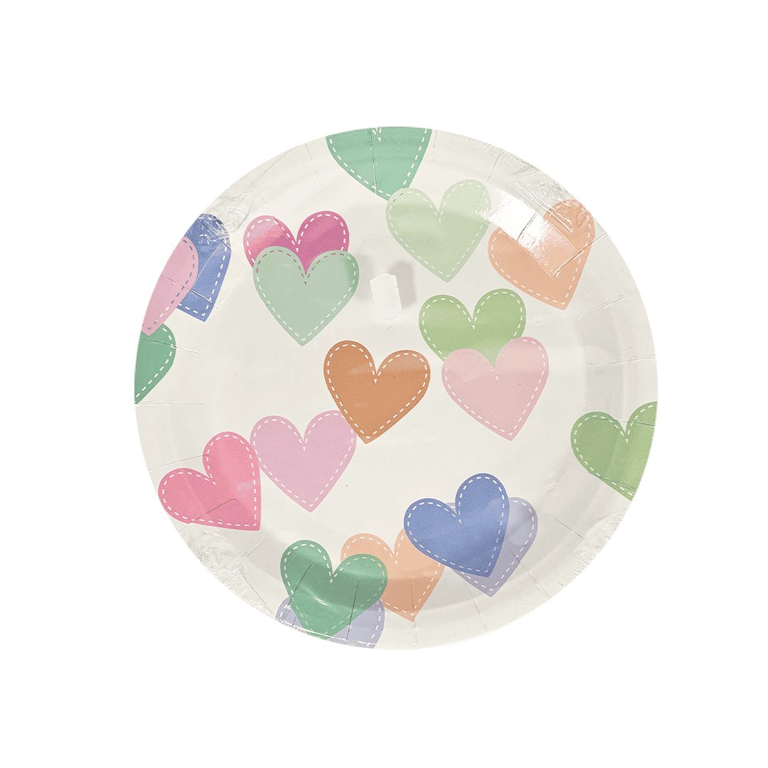 Platos 9″ de corazones diseñs surtidos. Nota: Este producto es de presentación surtida, por lo que podrías recibir cualquiera de sus variaciones. Si prefieres un color específico, indícalo en tu pedido; se enviará según disponibilidad.