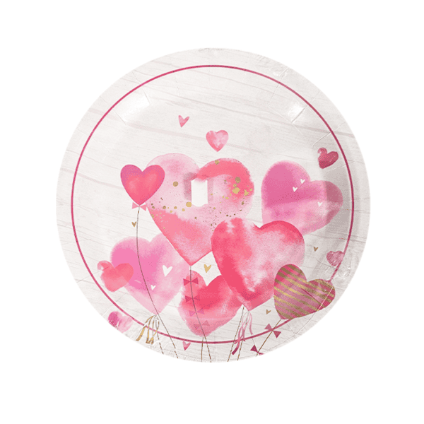 Platos 9″ de corazones diseñs surtidos. Nota: Este producto es de presentación surtida, por lo que podrías recibir cualquiera de sus variaciones. Si prefieres un color específico, indícalo en tu pedido; se enviará según disponibilidad.