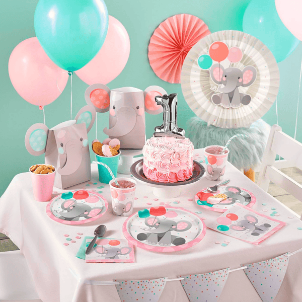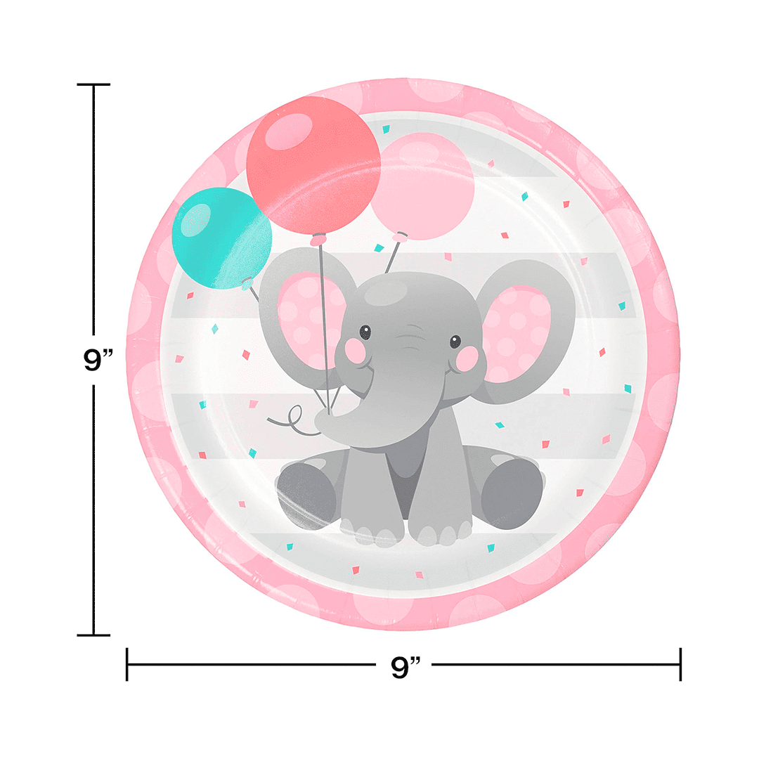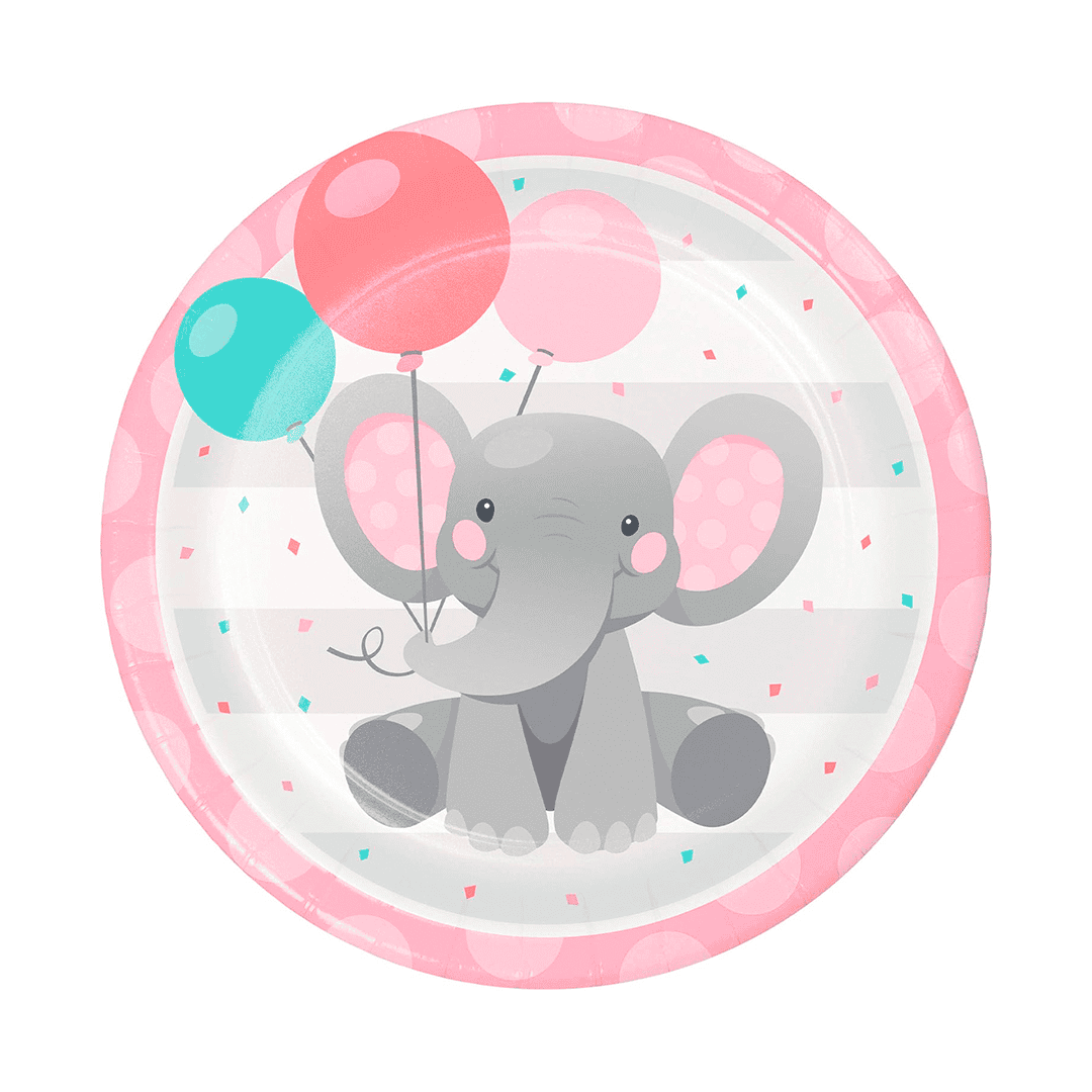 Platos pequeños de encantadores de elefantes, (Tamaño de 9 pulgadas),Paquete de 8 unidades, diseño prémium para baby showers.