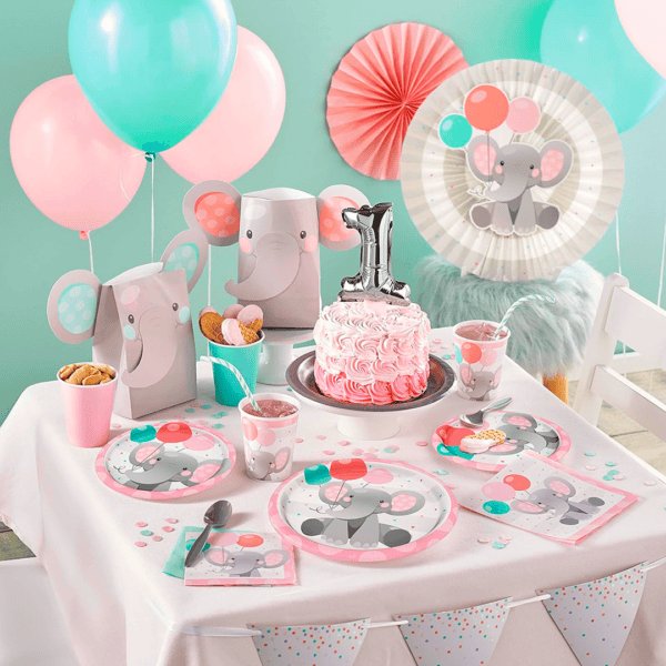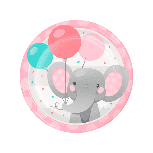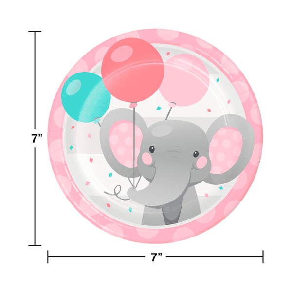 Platos pequeños de encantadores de elefantes, (Tamaño de 7 pulgadas),Paquete de 8 unidades, diseño prémium para baby showers.