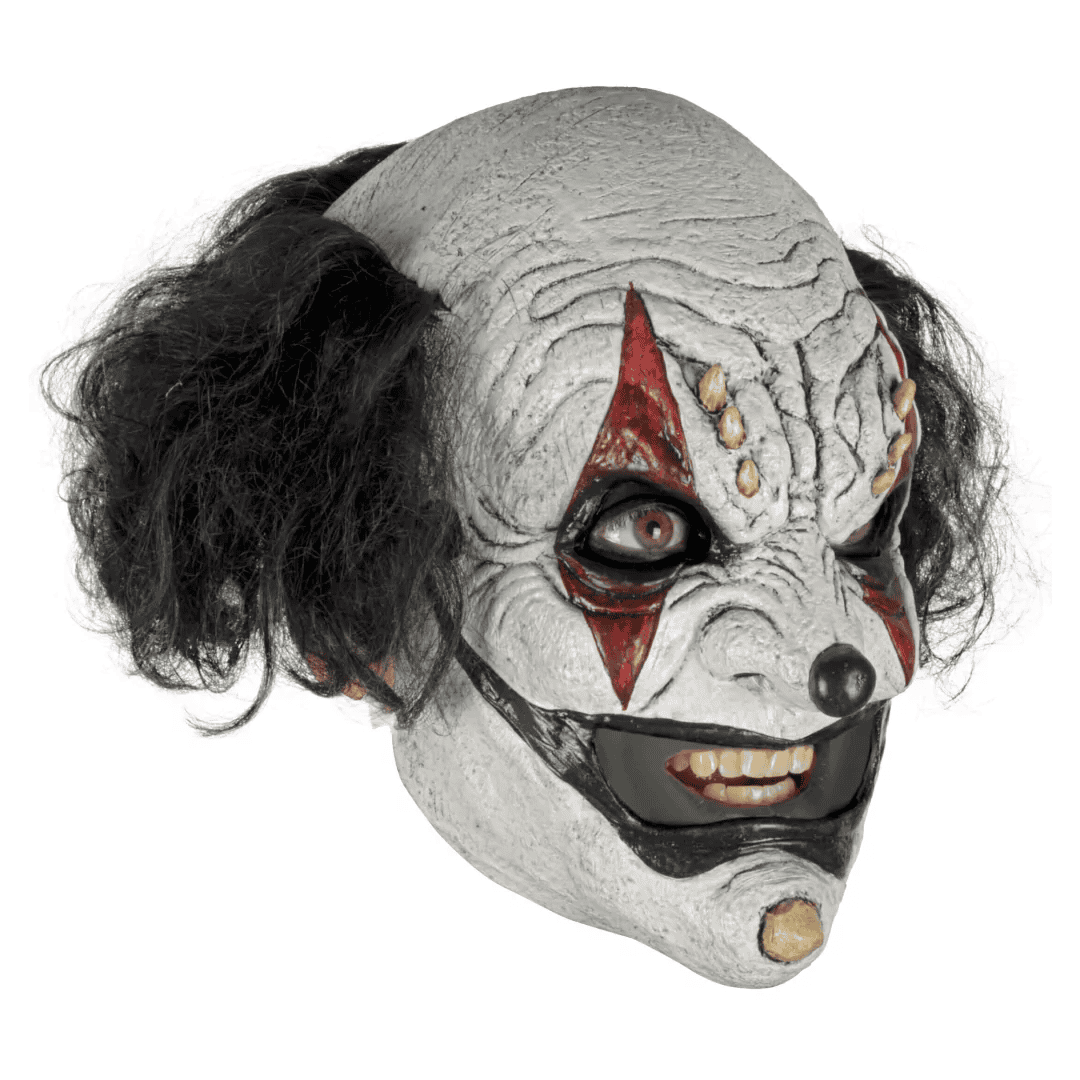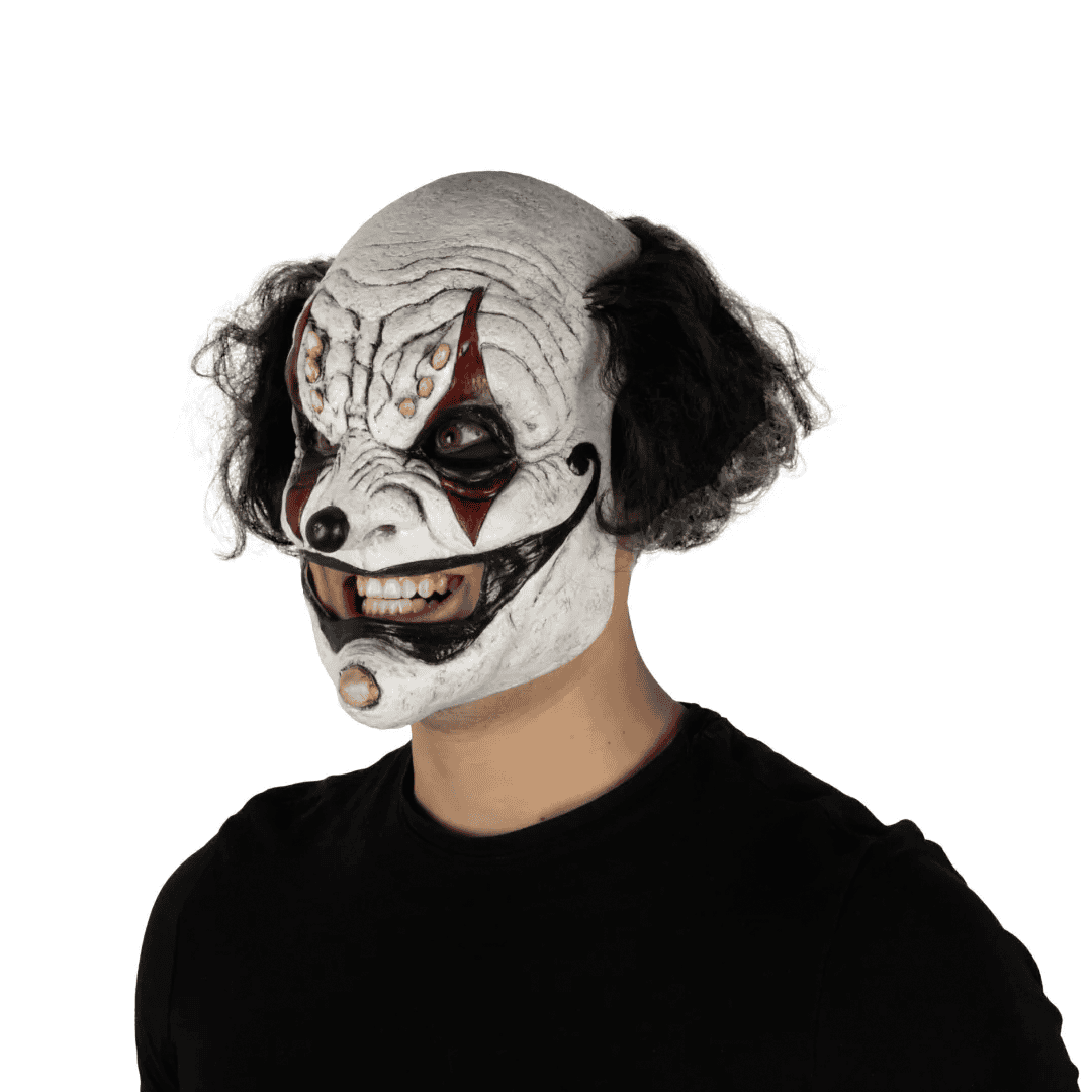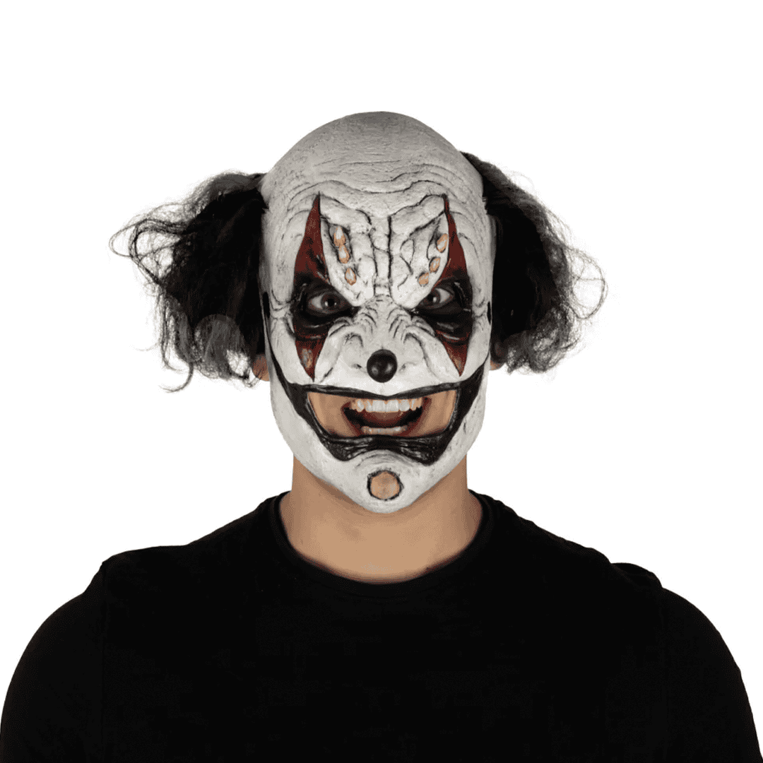 Máscara de látex Prankster Clown Black de la línea de Clowns. ¡Prepárate para hacer travesuras con la máscara de Prankster Clown Black! Ideal para agregar un toque de diversión y travesura a tu disfraz en cualquier evento. ¡Haz que todos se rían y se sorprendan con esta genial máscara de Prankster Clown Black!