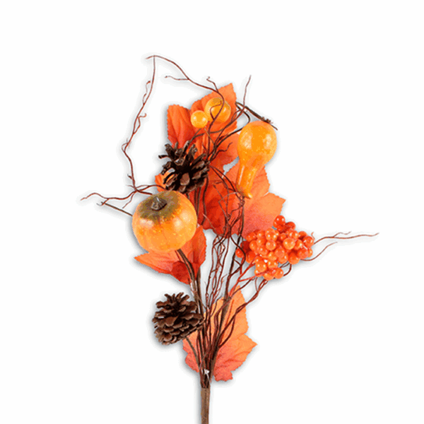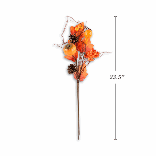 Rama de hoja de arce otoñal de 23,5 pulgadas con piñas y calabazas.
