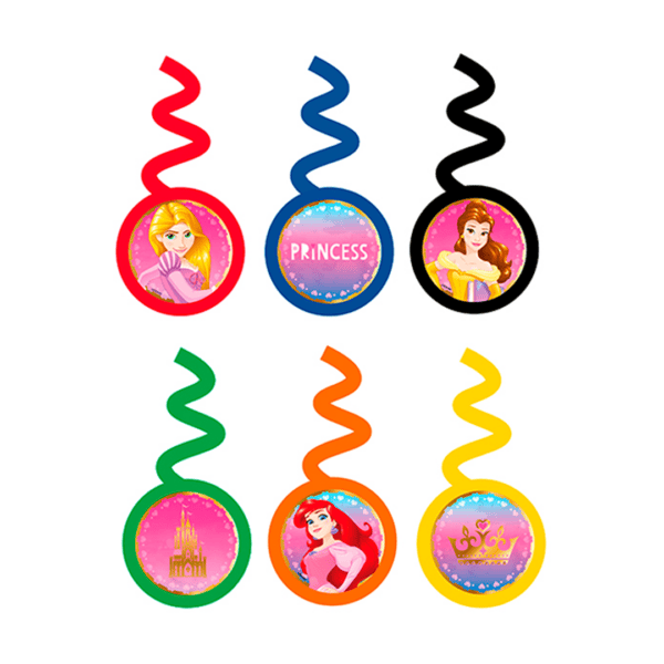Remolino Decorativo de Princesas, paquete de 6 unidades. Colors y diseños surtidos.