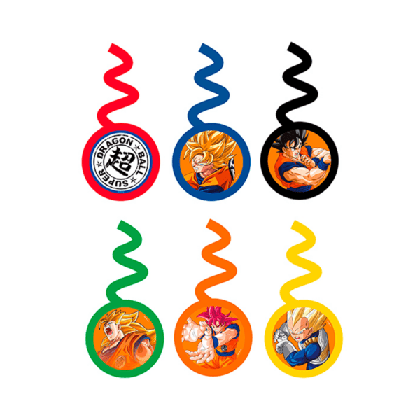 Remolino Dragon Ball, paquete de 6 undiades, diseños y colores surtidos.