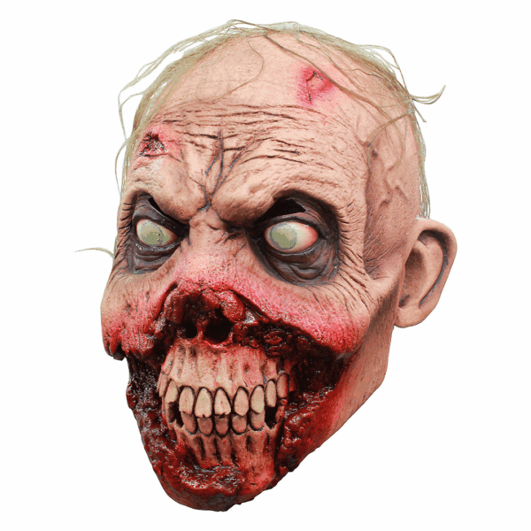 Máscara de látex que cubre toda la cabeza. Pintada a mano individualmente para lograr el mayor realismo posible. Talla única para la mayoría de los adultos.
