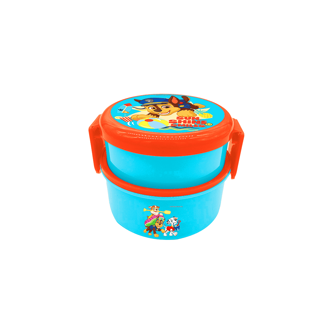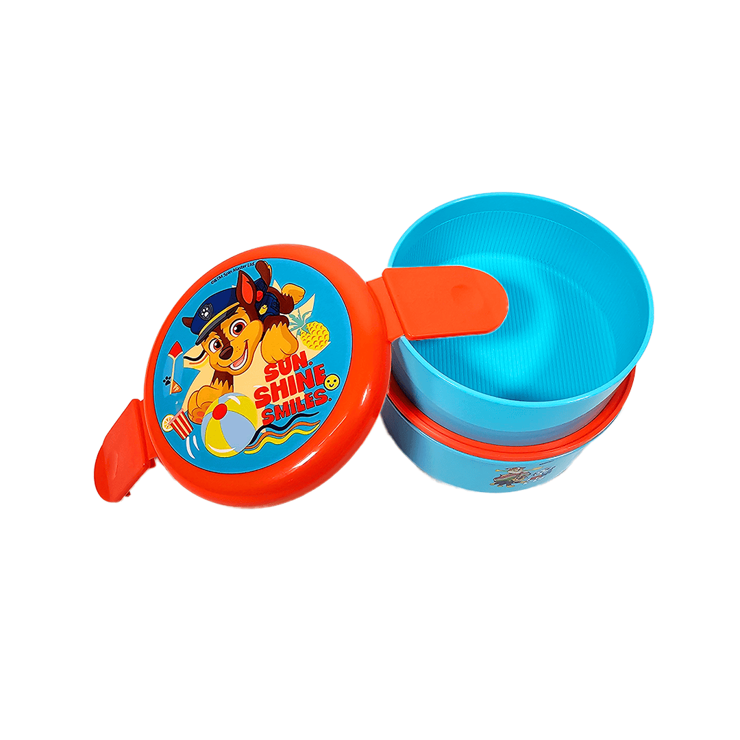 Sandwichera redonda con tenedor Paw Patrol, ideal para lonchera nutritiva / back to school
