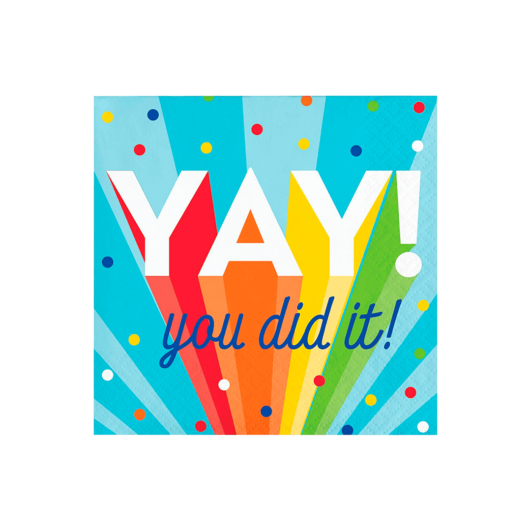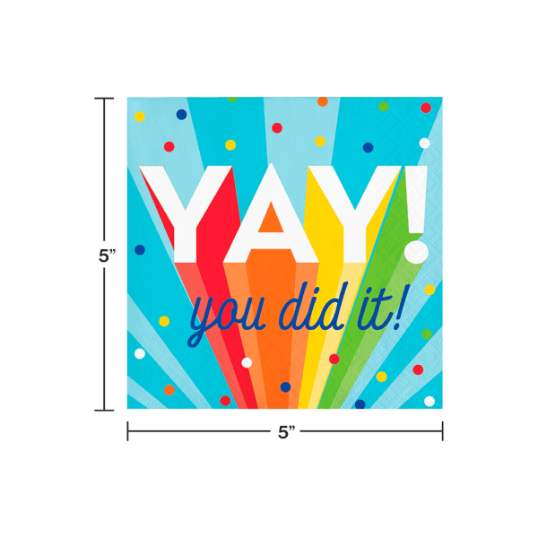 Servilleta pequeña para graduación. Multicolor. Diseño YAY! You did it!. Tamaño: 5 pulgadas.